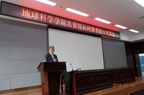 3月10日,中国工程院何继善院士在上午参加完学校解庆林校长出席的兼职教授、bv伟德国际1946名誉院长聘任仪式和座谈后,在熊彬院长的陪同下风尘仆仆赶赴雁山校区,在逸夫楼1501参加了学院全体教职工见面会,此次见面会由学院院长熊彬主持,学院党政领导班子成员和全体教职员工参加。