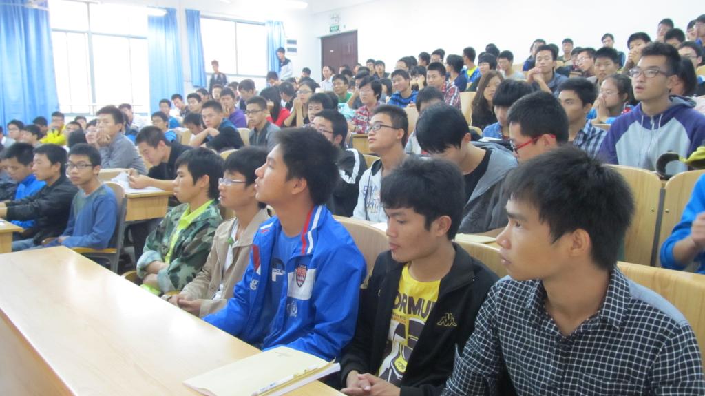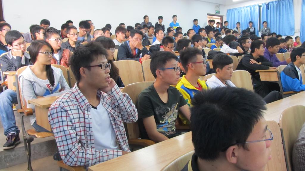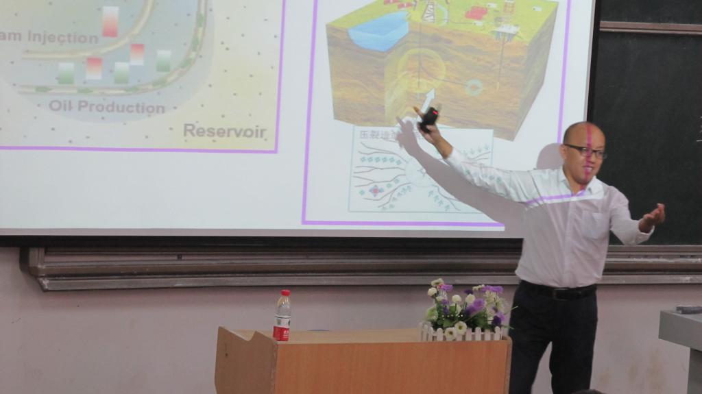 上午10时许,教室就挤满了兴致勃勃的听讲同学。讲坛开始后,李教授分别向同学们介绍了国外石油开采的历史;石油工业发展的历程;我国是如何改变依赖石油进口的局面;我国石油生产是如何自给自足!在讲授石油生产自给自足的过程中,李教授着重强调了石油人的开拓进取、石油人的精神——大庆油田的铁人精神:“宁肯少活20年,拼命也要拿下大油田”的忘我拼搏精神;为革命“有利条件要上,没有条件创造条件也要上”的艰苦奋斗精神;“要为油田负责一辈子”,对技术精益求精,为革命“练一身硬功夫、真本事”的科学求实精神。