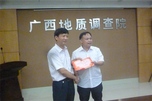 解庆林校长(左)为广西壮族自治区地质调查院外聘指导教师颁发聘书