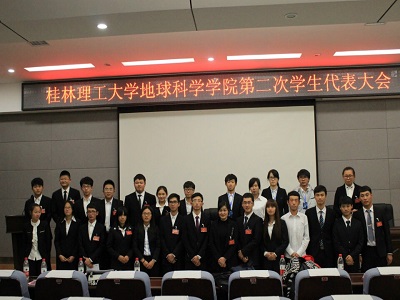 2014年12月6日下午14:40,桂林理工大学bv伟德国际1946第二次学生代表大会在逸夫楼01501报告团厅召开。我校团委书记周国桥,我院党委副书记耿俊茂、团委书记蒋琼、学工组长王迎波,以及校学生会副主席范可、各学院代表和我院两百余名学生代表参加了本次会议,会议由大会秘书长颜培天主持。