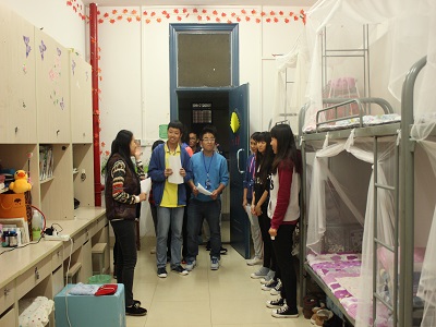 为丰富校园文化活动,创造美好生活空间,进一步美化我院学生的生活环境,增强同学之间的交流与友谊。营造良好的寝室文化氛围,发挥各寝室特长和“团结友爱、互帮互助”的精神,提供同学们更多发挥创造自己的空间。11月29日晚上七点半,我院宿舍装饰大赛初赛的审核正式开始。审核人员由我院团委学生会各部门部长、副部长及各班级生活委组成。