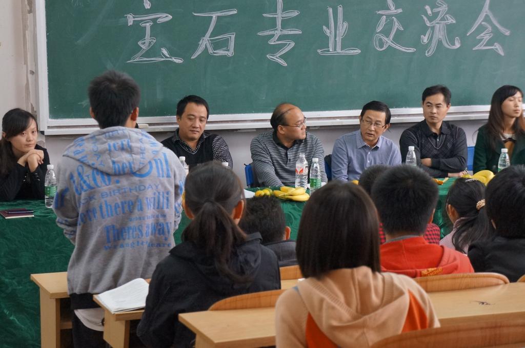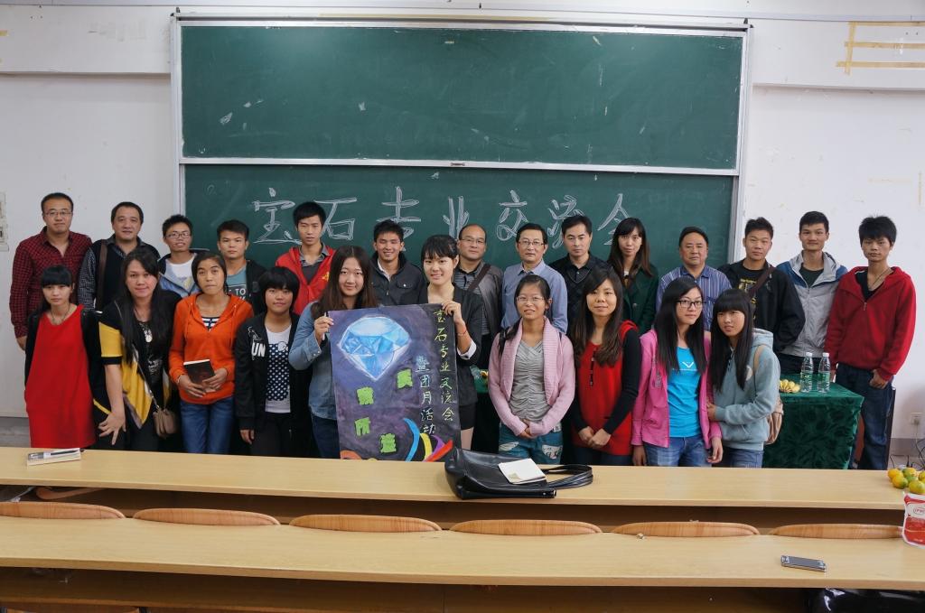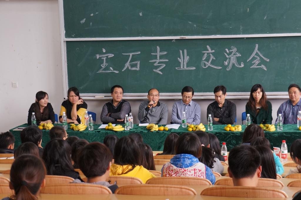 交流会上雷威等诸位宝石专业老师对同学们的提问进行了回答,还提出了“稳抓专业课,注重实践,英语不能落下”的建议。两位老校友则是用风趣幽默的语言展现自己的创业经历、对同学们的期许。整场交流会,同学们掌声不断。最后,在同学们的意犹未尽、在嘉宾们期待来年的继续交流中,交流会落下了帷幕,也为本次特色团月活动画上了一个圆满的句号。