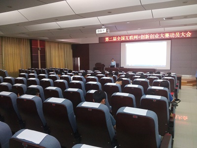 2016年5月19日中午,在逸夫楼501报告厅,我院召开了“互联网+”创新创业动员大会。会议由团委书记蒋琼主持,学院党委副书记耿俊茂参加会议。在动员大会上,蒋琼老师介绍了比赛流程,耿俊茂副书记通过案例给大家讲解了学生创新创业的一般思路和基本平台,积极鼓励在场的同学们行动起来,组建创业团队,并寄希望创新创业大赛平台能够发掘更多优秀人才。