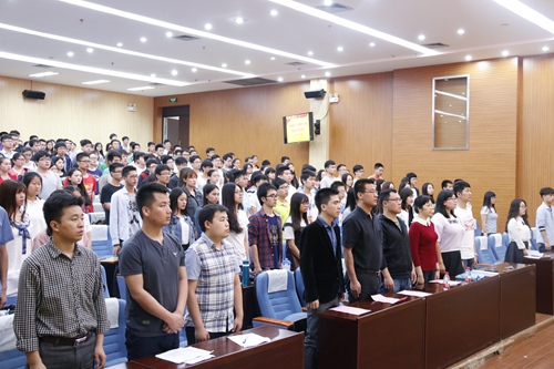 随着国歌嘹亮,开班典礼在全体起立合唱中拉开帷幕。开班致辞中,机械与控制工程学院党校副校长、党委副书记邓洁琼同志在祝贺本次党校培训班顺利开班的同时,在对学员们提出要求中指出,一是提高思想认识,深刻理解预备党员培训的重要性;二是珍惜培训机会,结合目前全党开展的“两学一做”学习教育,真正做到学有所思、学有所悟、学有所获;三是严格遵守培训班的各项规定,确保培训效果。随后由理学院团委书记单江涛同志和测绘地理信息学院教务员夏永超同志分别进行宣读《伟德国际1946手机第十一期预备党员培训班方案》和作培训要求讲话。