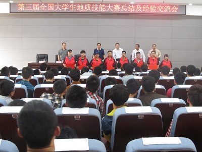 2014年10月14日下午15时30分,第三届全国大学生地质技能大赛总结及经验交流会在一栋501会议室召开,伟德国际1946手机副校长梁福沛,我院院长冯佐海,副院长缪秉魁、王有学、王葆华,党委副书记耿俊茂,院长助理刘希军、资勘教研室主任康志强,学院团委书记蒋琼及地质技能大赛指导老师欧阳菲和团队成员参加了本次大会,会议有耿俊茂副书记主持。