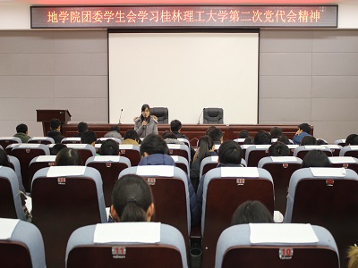 2015年1月12日中午12:30,地学院学生干部学习第二次党代会精神专题会议在逸夫楼01501会议室召开。我院党委副书记耿俊茂、团委书记蒋琼及学生学院学生干部参加了会议,会议由蒋琼老师主持。