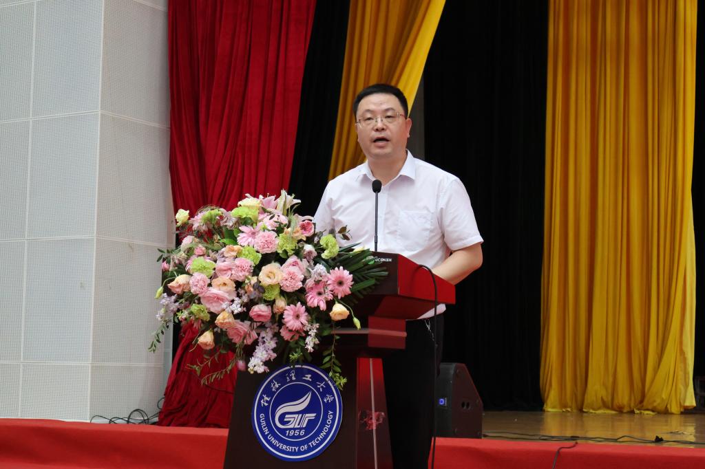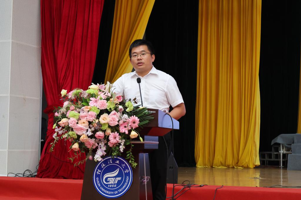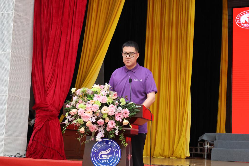 典礼在庄严的国歌声中拉开序幕。会上,学院党委副书记、常务副院长刘希军教授代表学院全体师生向2024级新生的到来表示热烈的欢迎和衷心的祝贺。刘院长详细介绍了学院的悠久历史、辉煌成就和深厚底蕴,通过一心求索、风雨兼程,以“指南针”明方向;锚定目标、登高问学,以“放大镜”拓视野;攻坚克难、开山辟路,以“地质锤”破难题三个方面的生动讲述,鼓励新生们大力弘扬地质“三光荣”传统,勇攀地球科学高峰,为推动国家地学高质量发展贡献桂工学子的智慧力量。