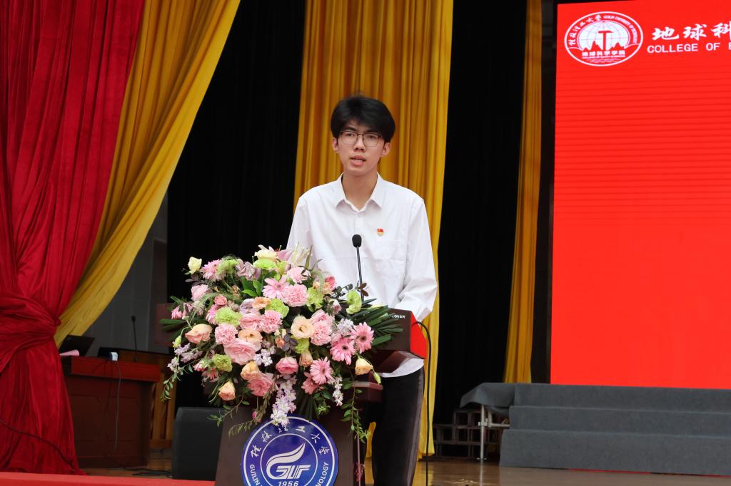在校生代表、2022级勘查技术与工程专业本科生朱杰同学发言。他结合自己的学习经历,分享了如何在大学期间提升自我、实现价值的宝贵经验。