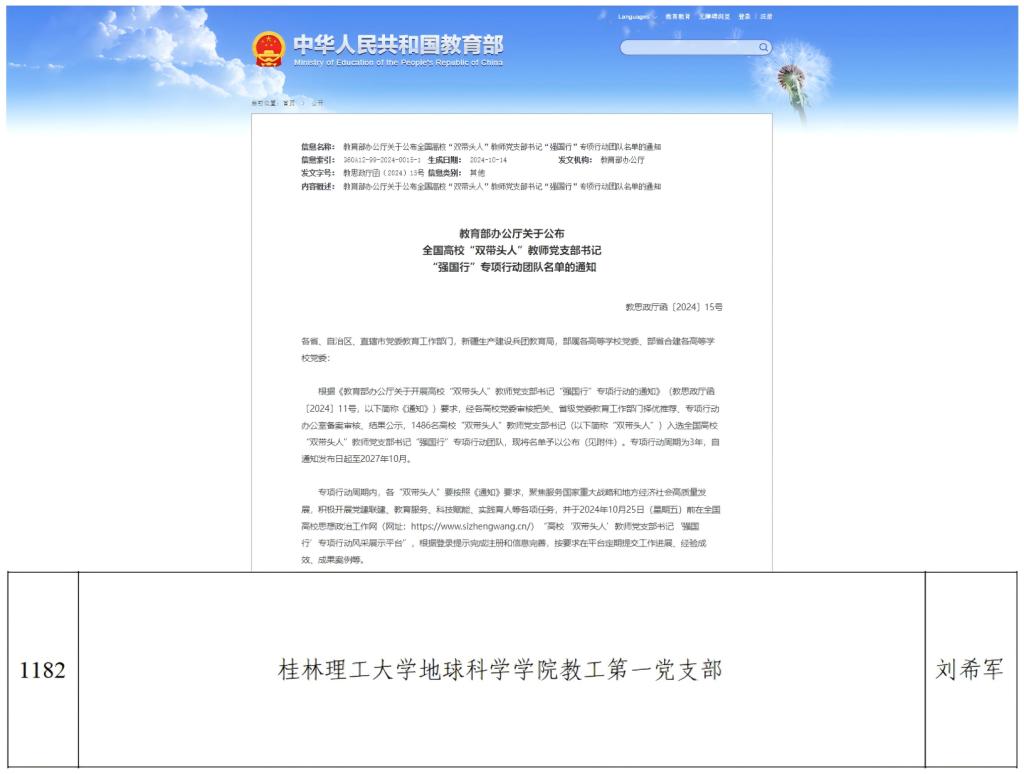 学院教工第一党支部入选全国高校“双带头人”教师党支部书记“强国行”专项行动团队