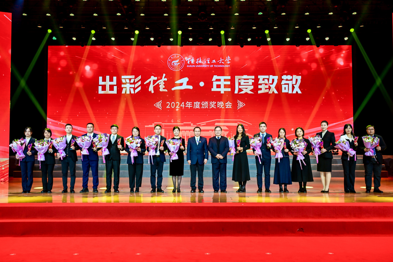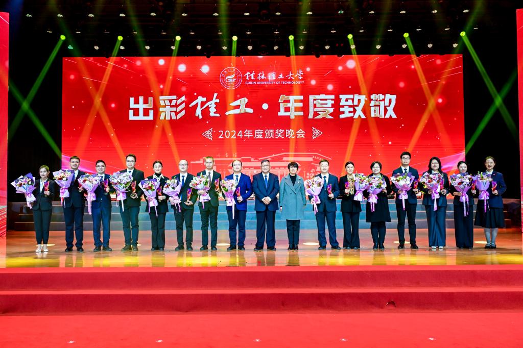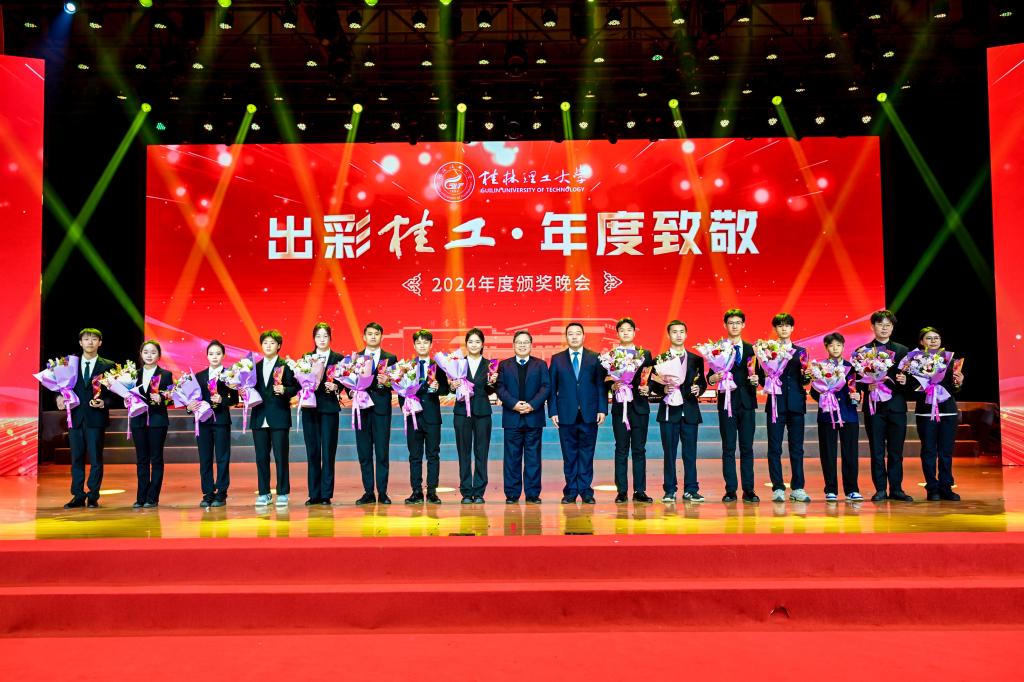 12月27日晚,学校2024年度“出彩桂工·年度致敬”颁奖晚会在雁山校区新体育馆成功上演。学校领导、各界嘉宾、师生代表欢聚一堂,共同为2024年桂工取得的新成就喝彩、向每一个为理想拼搏奋斗的出彩桂工人点赞致敬、为更加幸福美好的桂工加油。