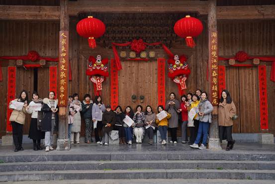 活动以踏春赏花拉开序幕,女性教职工们在漓水两岸的田园风光中用镜头记录春日美景。随后,众人齐聚非遗工坊,亲手体验“门簪拓印”传统技艺,通过宣纸与墨香感受匠心之美。傍晚时分,古宅内举行特色上菜仪式,让现代教育工作者沉浸式体验传统饮食礼俗。