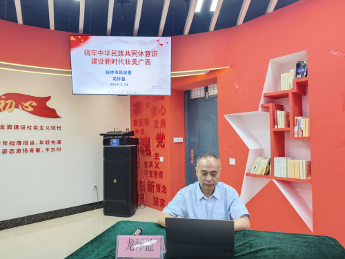讲座邀请了桂林市少数民族服务中心主任龙怀益作《铸牢中华民族共同体意识 建设新时代壮美广西》专题报告。他从“铸牢中华民族共同体意识解读”“建设铸牢中华民族共同体意识示范区”“青年学子如何促进新时代民族团结进步工作”三个方面展开,内容丰富,事例鲜活,深入浅出,全面系统,有效引导广大青年理解铸牢中华民族共同体意识的基本内涵与核心要义,认识铸牢中华民族共同体意识的重要意义,自觉做铸牢中华民族共同体意识的践行者、传播者和弘扬者。