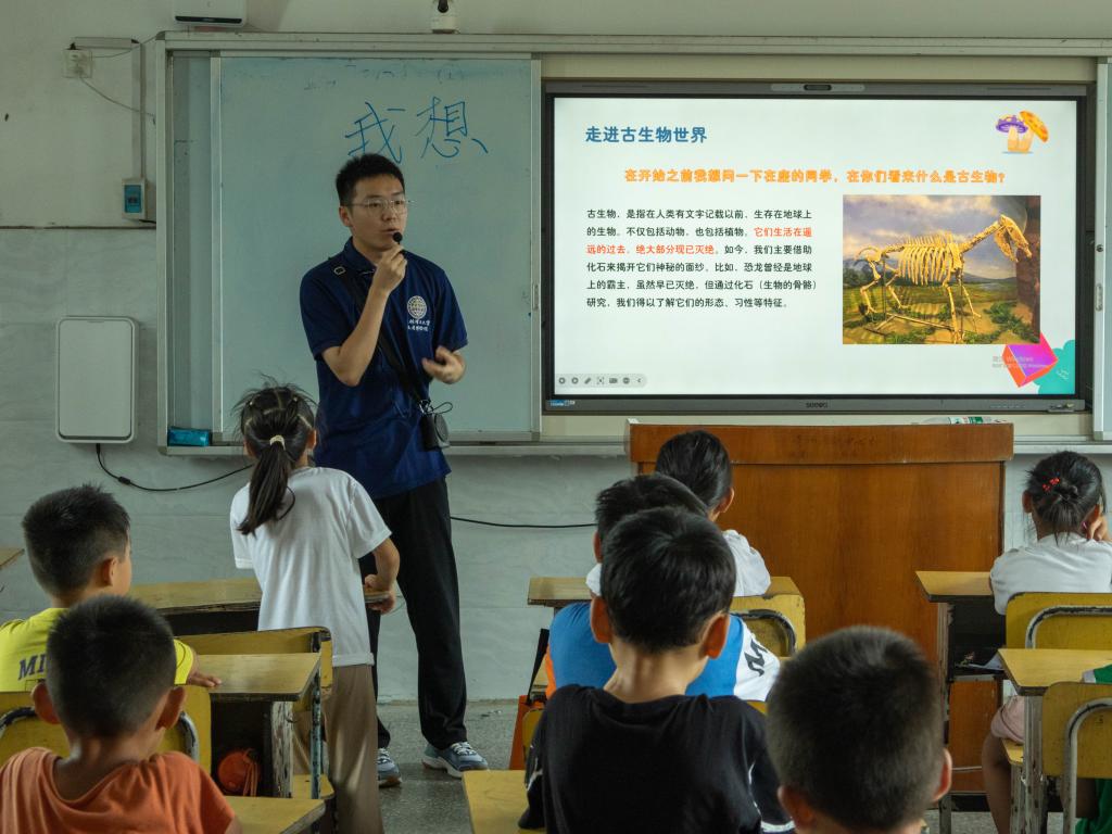 地质科普课堂,成员们手持岩石标本耐心讲解,孩子们眼中闪烁着探索地球奥秘的光芒;版图复原游戏,省份拼图滑动于指尖,国家版图意识刻骨铭心,爱国情愫悄然扎根;物理科学实验,水火箭带着梦想升空,科学知识的种子无声播撒;安全教育现场,情景模拟与互动问答交替进行,自护意识深入人心;书信活动桌前,孩子们心声流露,字里行间流淌着纯粹的情感。这不仅仅是一场普通的支教活动,更是一次发挥地质学科优势为乡村教育注入活力的深度实践。他们系统设计课程体系,创新教育传播方式,精准对接乡村学生在科学认知、安全防护与情感表达上的需求。