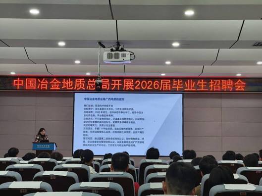 2025年10月25日上午,中国冶金地质总局2026届毕业生专场招聘会在我院雁山校区01501报告厅顺利举行。本次招聘会由我院与单位协同组织,旨在搭建优质就业平台,助力毕业生高质量就业,吸引了来自bv伟德国际1946、测绘地理信息学院、环境科学与工程学院等100多名毕业生踊跃参与。