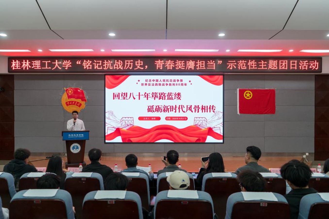10月27日,由学校团委主办、bv伟德国际1946承办的“铭记抗战历史 青春挺膺担当”示范性主题团日活动在雁山校区01501报告厅顺利开展,学校团委老师、bv伟德国际1946学工团委全体专兼职辅导员,各班级团支书、团员代表等240余人参加本次团日活动。