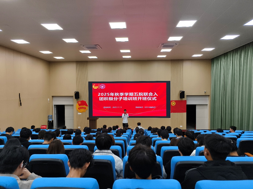2025年11月11日,bv伟德国际1946、数学与统计学院、物理与电子信息工程学院、艺术学院、计算机科学与工程学院在雁山校区03316报告厅联合举办2025年秋季学期入团积极分子培训班。96名入团积极分子参与本次培训。