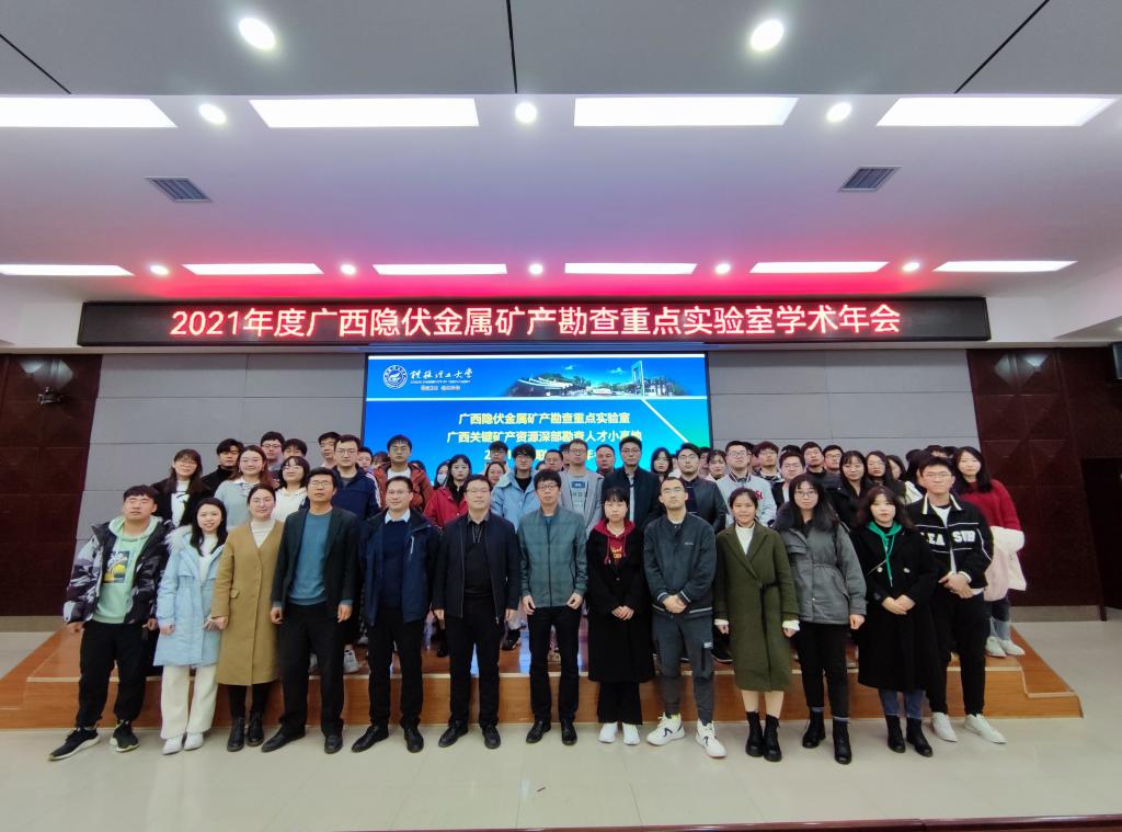 12月24日,广西隐伏金属矿产勘查重点实验室在雁山校区1号楼501学术报告厅举办了2021年学术年会暨学术委员会会议,学术年会由广西关键矿产资源深部勘查人才小高地协办,以“线上+线下”结合的方式举行。来自中国科学院、中国地质科学院、南京大学、北京大学、中国地质大学(北京)、中山大学、广西地质矿产勘查开发局、广西地质调查院和广西区域地质调查研究院等高校和单位的10余位区内外学术委员会专家委员线上出席会议,重点实验室相关人员和研究生90余人现场参加会议。