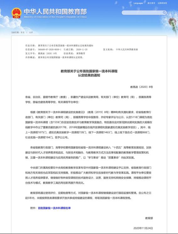 2020年《矿床矿相学》与《地球科学概论》分别获国家级线下、线上一流本科课程