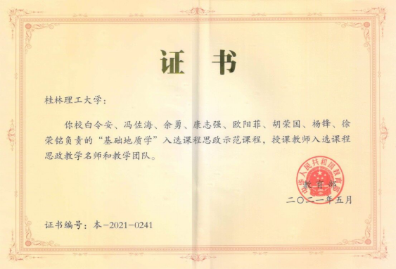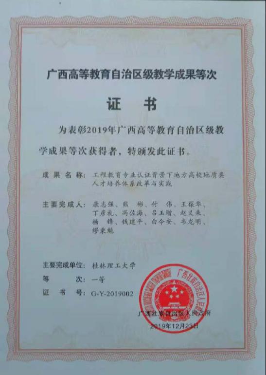 三、教学改革成果丰硕,2019年,康志强教授主持的“工程教育专业认证背景下地方高校地质类人才培养体系改革与实践”和钱建平教授主持的“理实一体、打造精品、服务多元、持续推进基础地质教学改革”同时获广西高等教育自治区级教学成果奖一等奖。