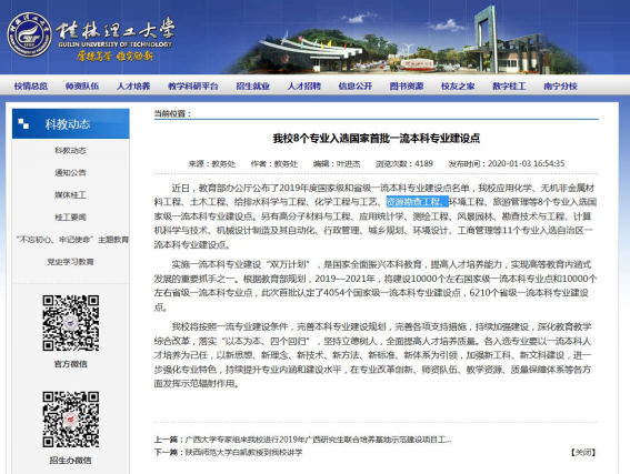 2020年1月资源勘查工程专业入选国家级一流本科专业建设点
