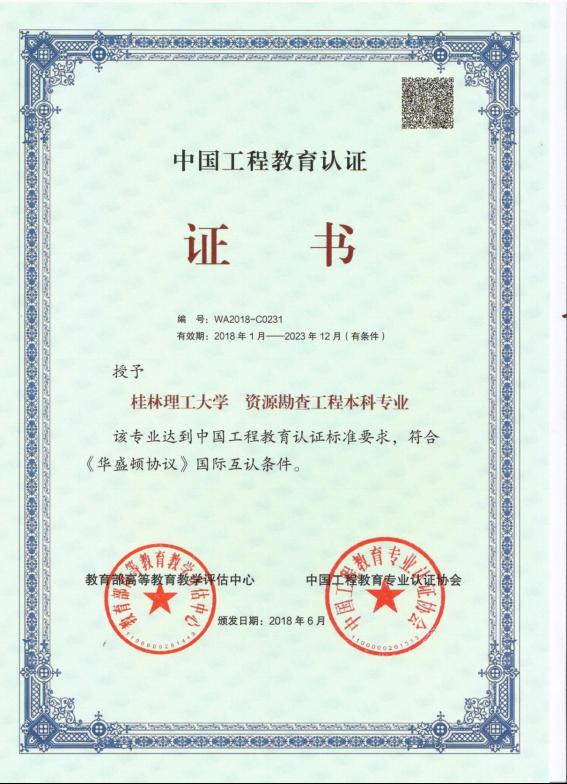 资源勘查工程专业于2018年通过中国工程教育认证,2021年6月通过中国工程教育认证中期审核