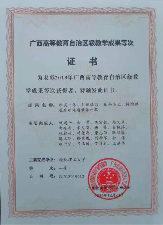 2019年广西高等教育自治区级教学成果奖一等奖(二)