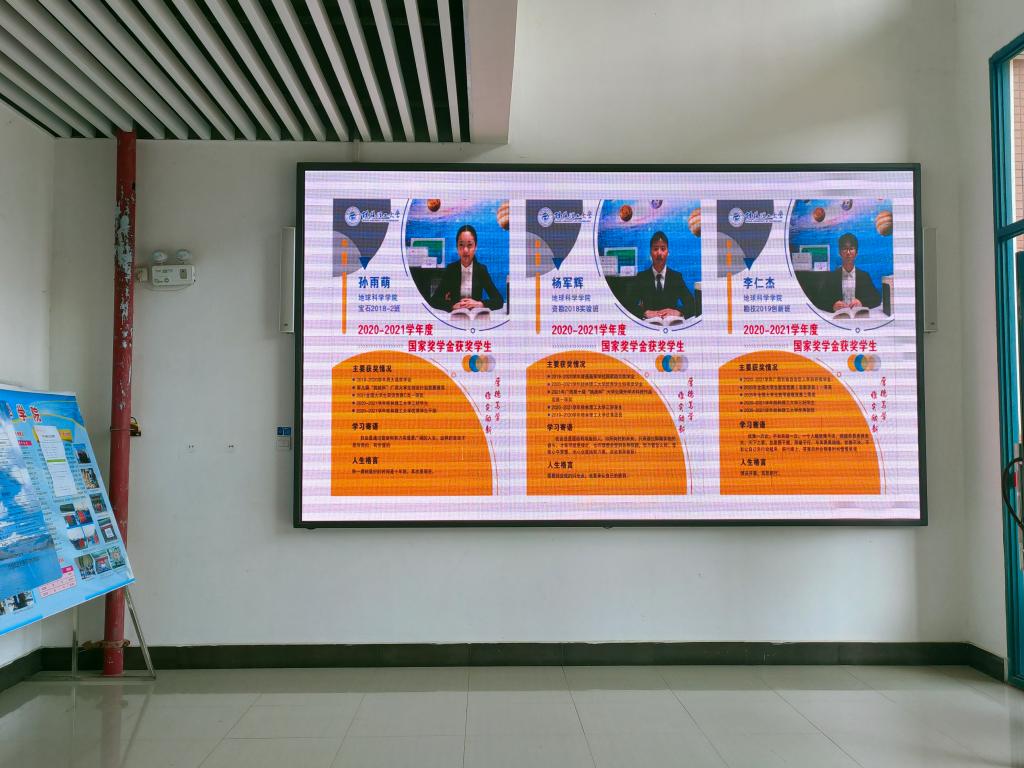 一方面,学院依托“地学微风”微信平台,推出“身边的榜样”系列推文,对2020-2021学年度国家奖学金获得者个人事迹进行深度挖掘。另一方面,依托“学生之家”、学生社区文化宣传栏和逸夫楼一楼电子屏对国家奖学金获得者风采进行展示,深入学生做好受助学生典型事迹宣传工作。