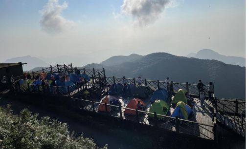 鉴于猫儿山野外实习点的丰富性和典型性,也综合考虑了各方面的影响因素,我们该实习路线决定了晚上夜宿帐篷,第二天徒步猫儿山授课的计划安排。尽管山上条件简陋,但同学们怀着兴奋期待着夜幕的降临,完全不顾实习的辛劳,伴着星光响起同学们的歌声笑语。