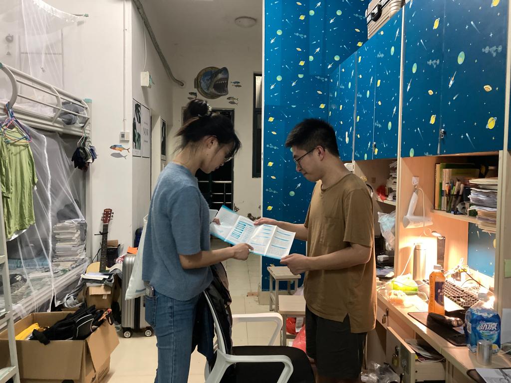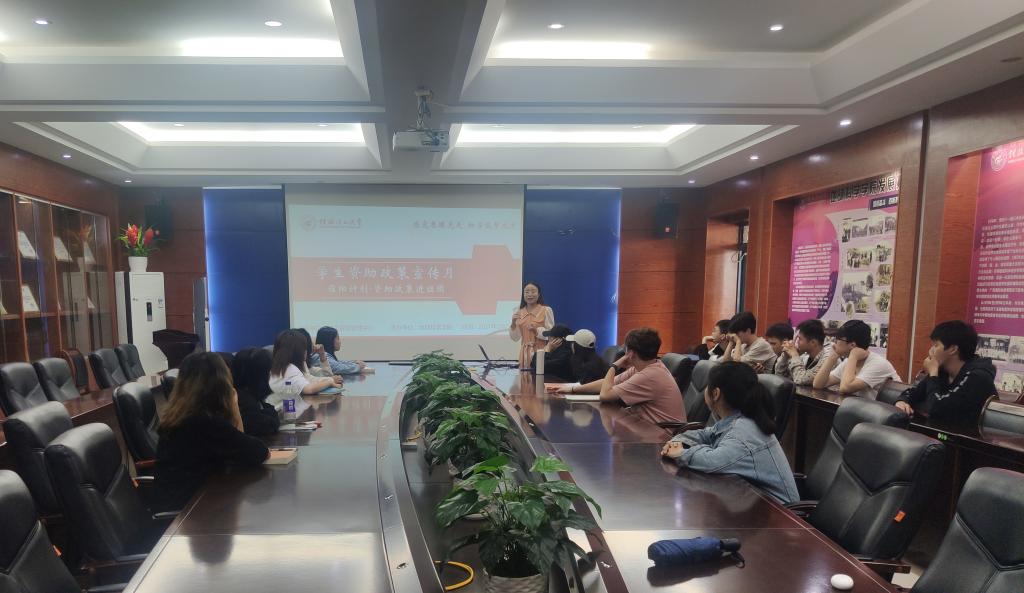 在年级层面,各年级辅导员紧扣资助工作推进进程,利用成长成才教育课围绕资助政策展开授课,新生辅导员则在新生未到校前利用钉钉平台进行直播,做好家庭经济困难学生认定的动员和宣传工作。在班级层面,依托主题班会团会开展资助政策体系、资助成效宣讲活动。同时,在辅导员宿舍走访过程中,通过分发资助政策宣传册、资助政策答疑等形式将资助政策送进宿舍。