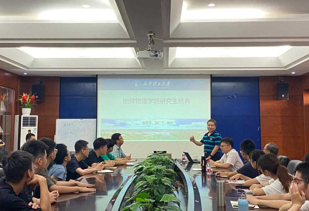7月7日上午在01215会议室,成都理工大学地球物理学院副院长梁春涛教授带队来我院进行勘技和地球物理专业的研究生招生宣讲会,本次会议由我院吕玉增副院长主持,18级和19级勘技专业的近50名本科生参与了本次会议。
