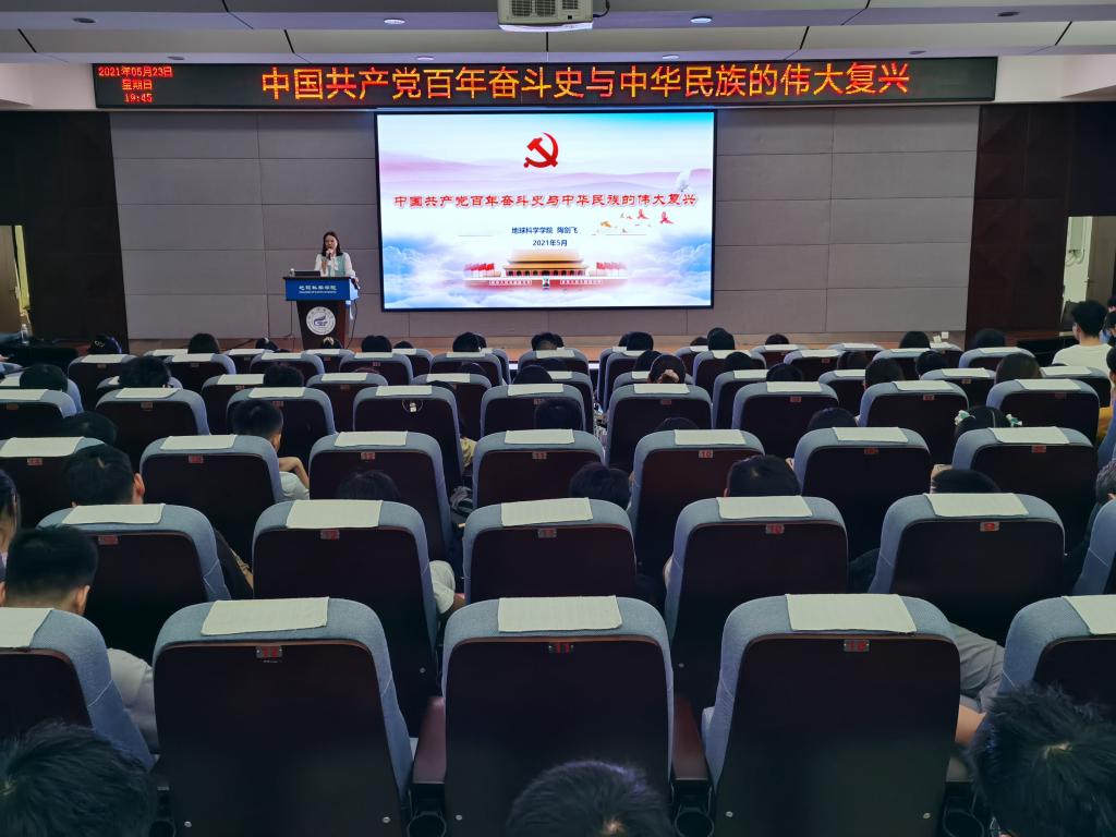 为深入学习百年辉煌党史,推动地学院党史学习教育工作落地落实,增强党史学习教育的吸引力,2021年5月23日19:30,地学院党委副书记陶剑飞老师在逸夫楼01501报告厅开展以“中国共产党百年奋斗史与中华民族的伟大复兴”为主题的党史专题宣讲课。bv伟德国际19462018级全体同学参与本次党史学习教育理论宣传活动。