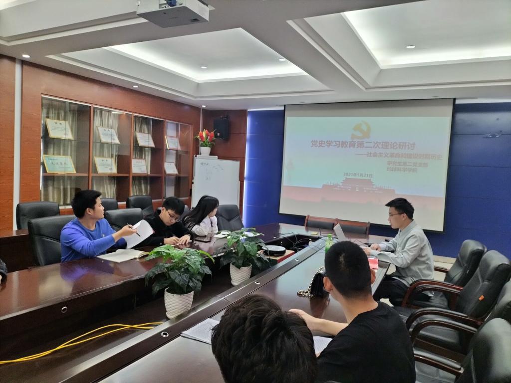 2021年5月21日15:00,研究生第二党支部在逸夫楼01215会议室组织开展党史学习教育第二次专题学习,本次会议主题为“学习社会主义革命和建设时期历史(1949-1978)”。会议由组织委员余松平同志主持,研究生第二党支部全体党员参加。