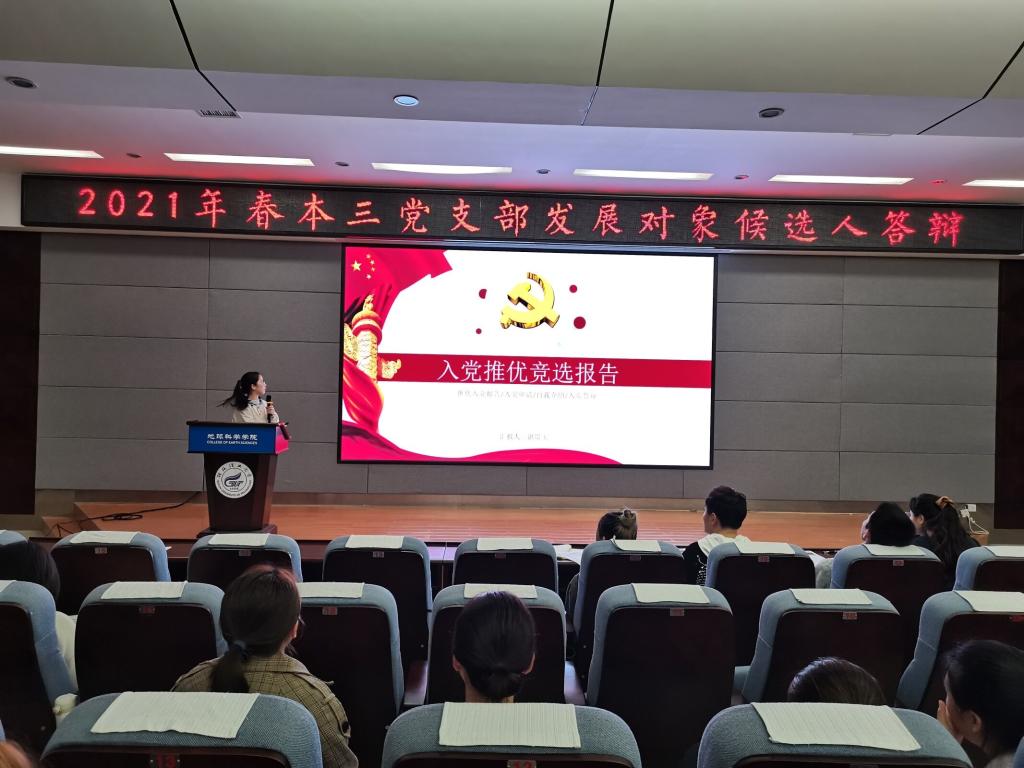 【党史学习教育】本科生第三党支部组织开展2021年春季学期发展对象候选人答辩暨党史学习教育会
