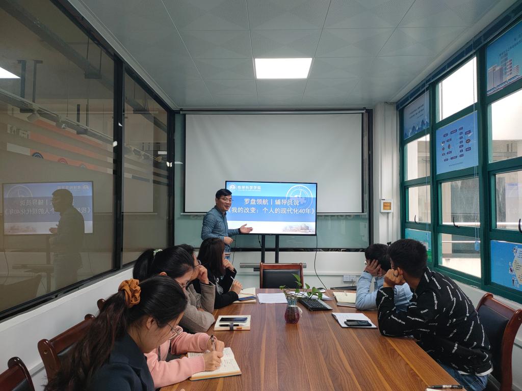 2021年4月12日,地学院在逸夫楼二楼多功能会议室开展“罗盘领航”辅导员说读书分享活动。此次读书分享活动由学院党委副书记陶剑飞、团委副书记吴田波作报告,学院全体辅导员参加。