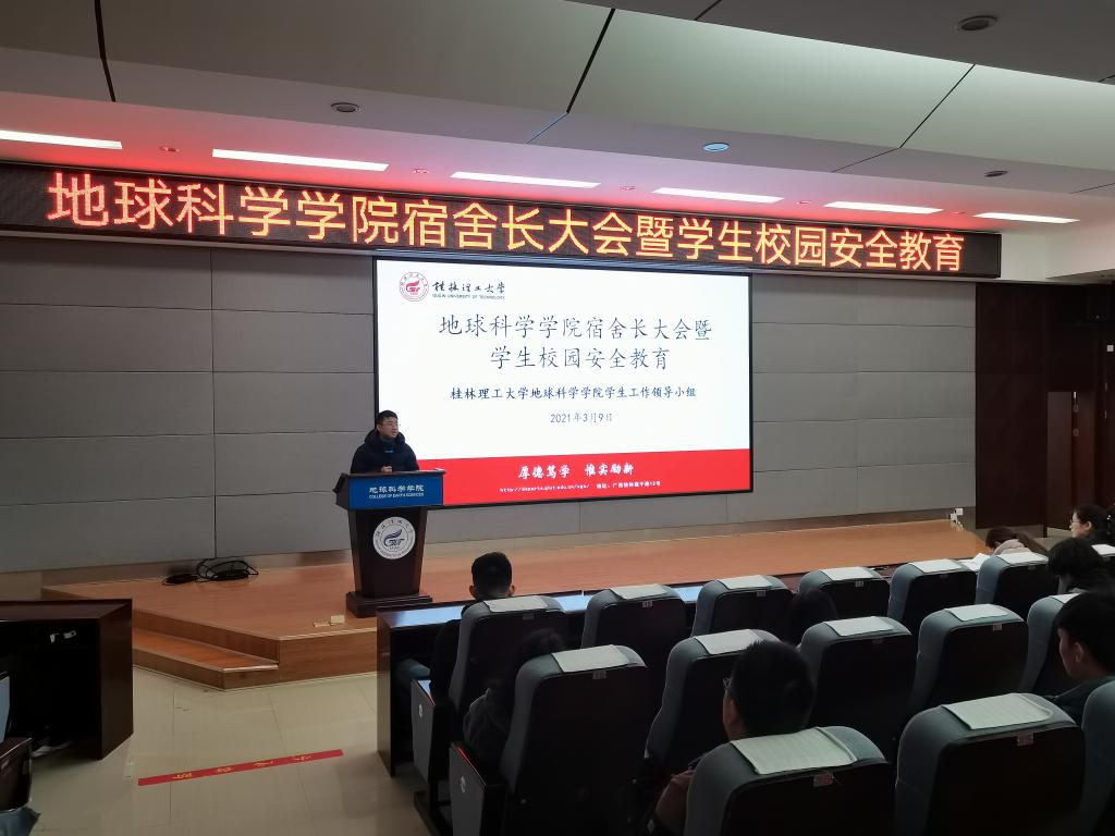 2021年3月10日中午,bv伟德国际1946在逸夫楼01501报告厅召开宿舍长大会暨学生校园安全教育工作会议,会议由学工办王成瑞老师主持,各年级辅导员和全院宿舍长参加。
