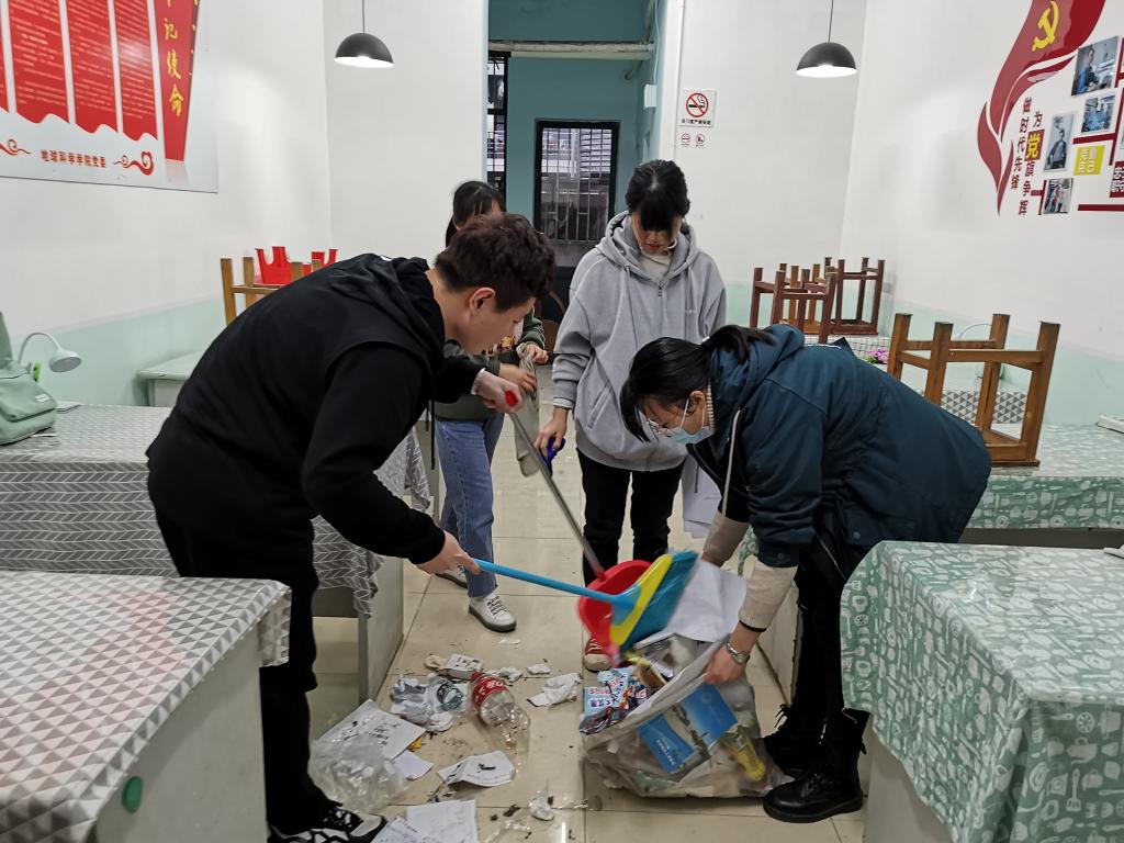 本次活动旨在把雷锋精神发扬到实处,从实践中学习感悟雷锋精神,同时为同学们提供整洁干净的自习环境。党支部党员分工合作,认真清扫灰尘,擦洗书桌书椅,摆放学习资料,经过一个小时的打扫,考研自习室焕然一新,给同学们创造出了整洁舒适的学习环境。