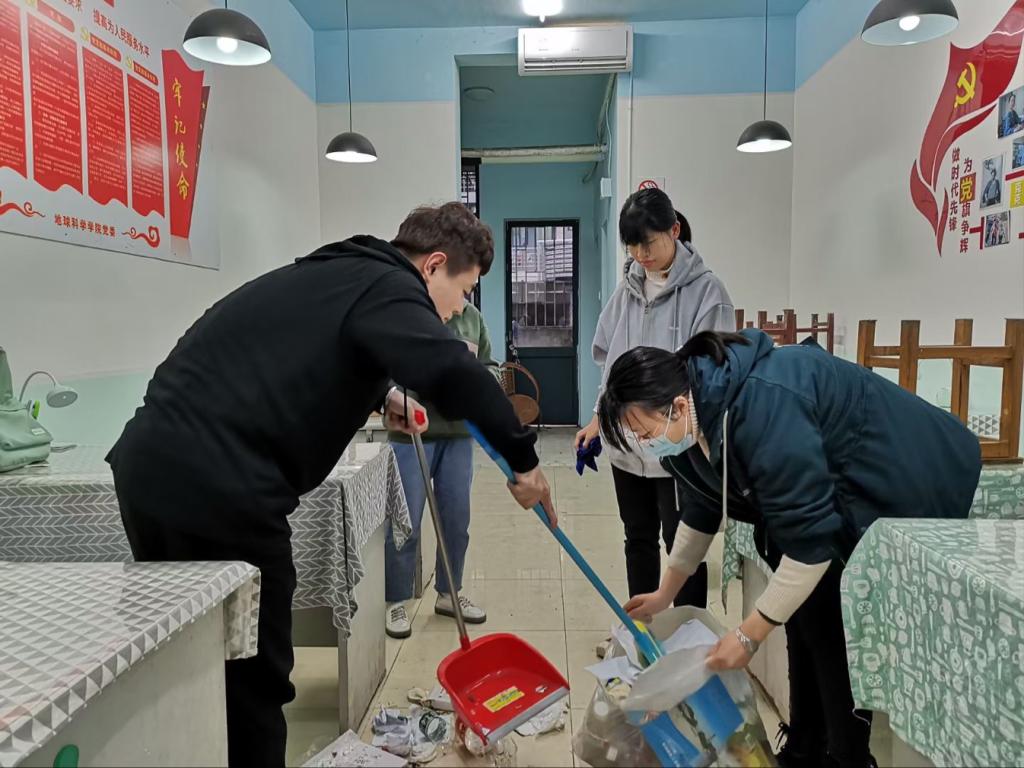 35日下午,我院党员志愿者针对逸夫楼研究生自习室、24栋本科生自习室、宿舍楼道等区域开展了一场“学习雷锋精神 共建美丽环境”的志愿服务活动。活动中,党员志愿者们手拿扫把、拖把、抹布等工具,对自习室各角落进行全方面清理打扫,用实际行动践行和传承雷锋精神,这既给同学们打造了一个干净舒畅的学习环境,同时有利于防范春季天气潮湿容易暴发的流行性疾病,能够很好地引导并带动更多同学参与到志愿服务活动中,不断传递着社会正能量。