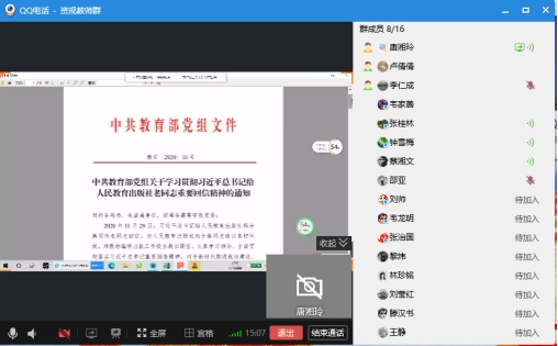 2021年1月8日,我院自然地理与资源环境教研室全体教师线上开展"学习贯彻习近平总书记给人民教育出版社老同志重要回信精神"的学习活动,教研室主任唐湘玲线上给老师们宣读了中共教育部党组文件“中共教育部党组关于学习贯彻习近平总书记给人民教育出版社老同志重要回信精神的通知”,认真学习领会“习近平总书记给人民教育出版社老同志的回信”精神。