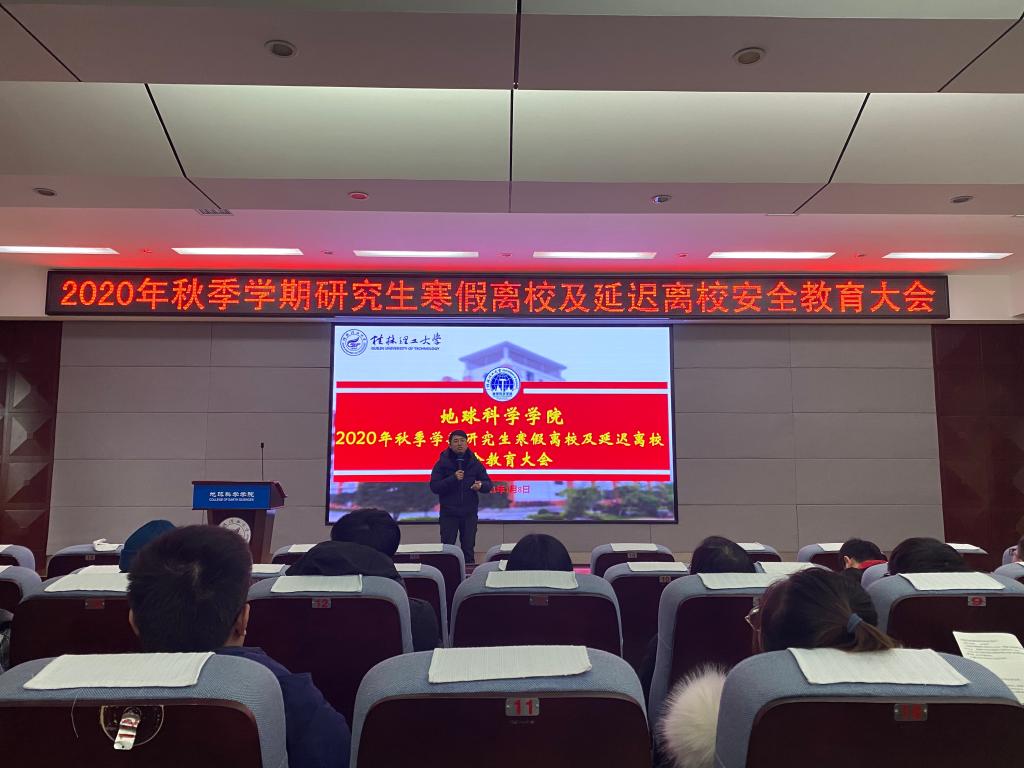 寒假临近,为切实做好2020年秋季学期研究生寒假离校及延迟离校工作,确保研究生文明、安全、有序离校,bv伟德国际1946于2021年1月8日下午在逸夫楼01501开展了研究生寒假离校及延迟离校安全教育大会。会议由地学院学工组长陈文甫主持召开,辅导员周密以及全体研究生参加了本次大会。