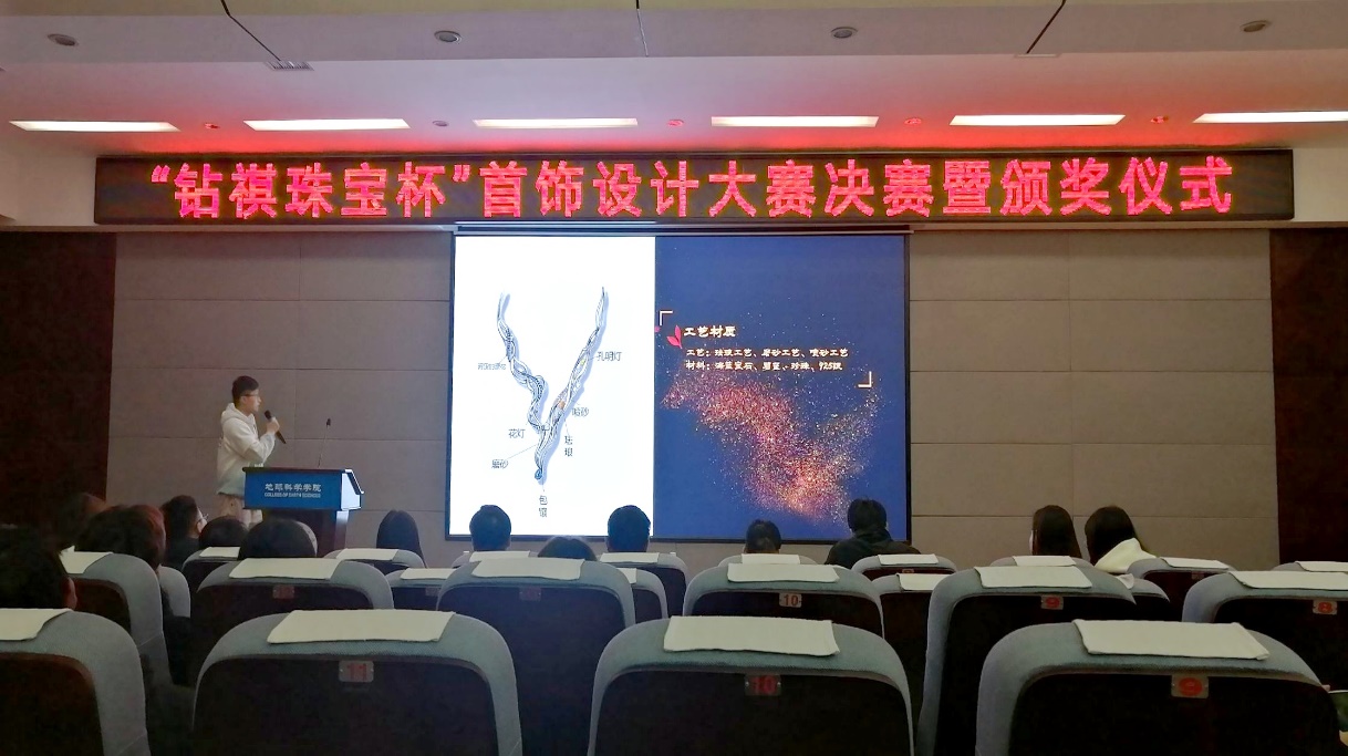 2020年12月29日晚,bv伟德国际1946珠宝协会于雁山校区01501报告厅举办 “钻祺珠宝杯”珠宝首饰设计大赛顺利举行。深圳市钻祺珠宝有限公司商品统筹部总监潘炳林先生、总经理助理刘素洁女士以及珠宝学院常务副院长李东升、副院长沙鑫等师生出席此次大赛。