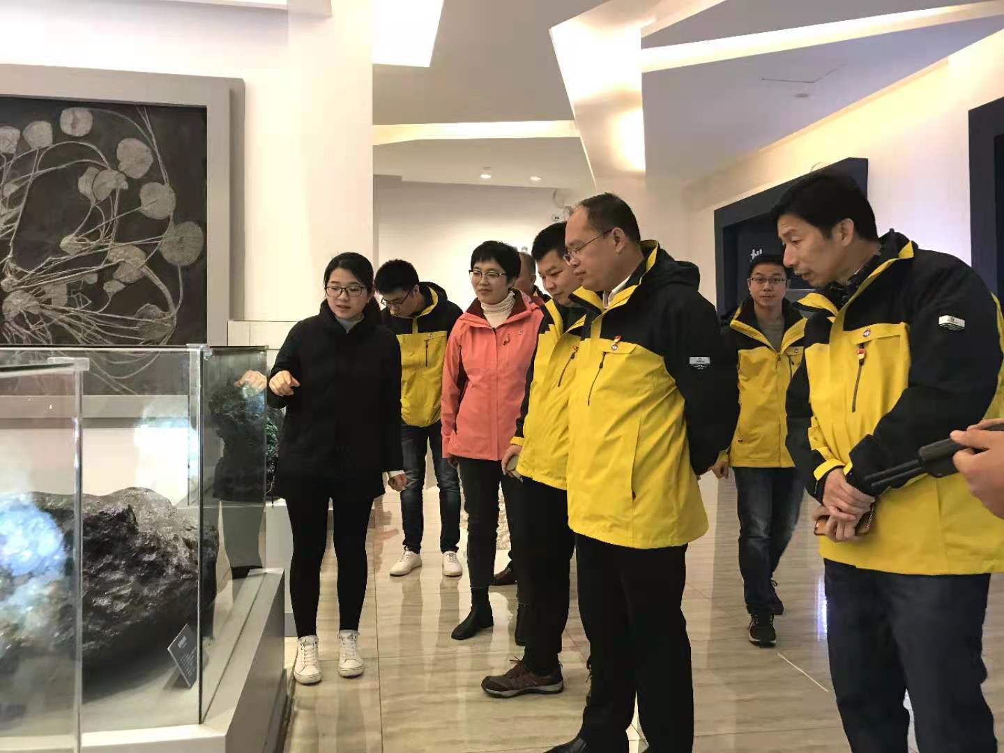 代俊鸽代表教工第五党支部做了党建工作介绍,张佳莉为广西区域地质调查研究院一行详细讲解了地质博物馆馆藏建设。在地质博物馆双方进行了合影留念。