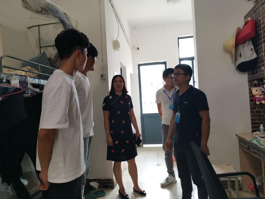 8月29日下午,为深入了解开学初学生宿舍情况,引导学生重视疫情防控,对返校学生进行关怀慰问,bv伟德国际1946党委副书记陶剑飞带领学院全体辅导员老师走访了学生宿舍。