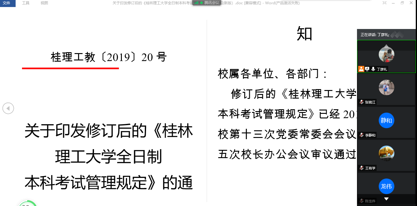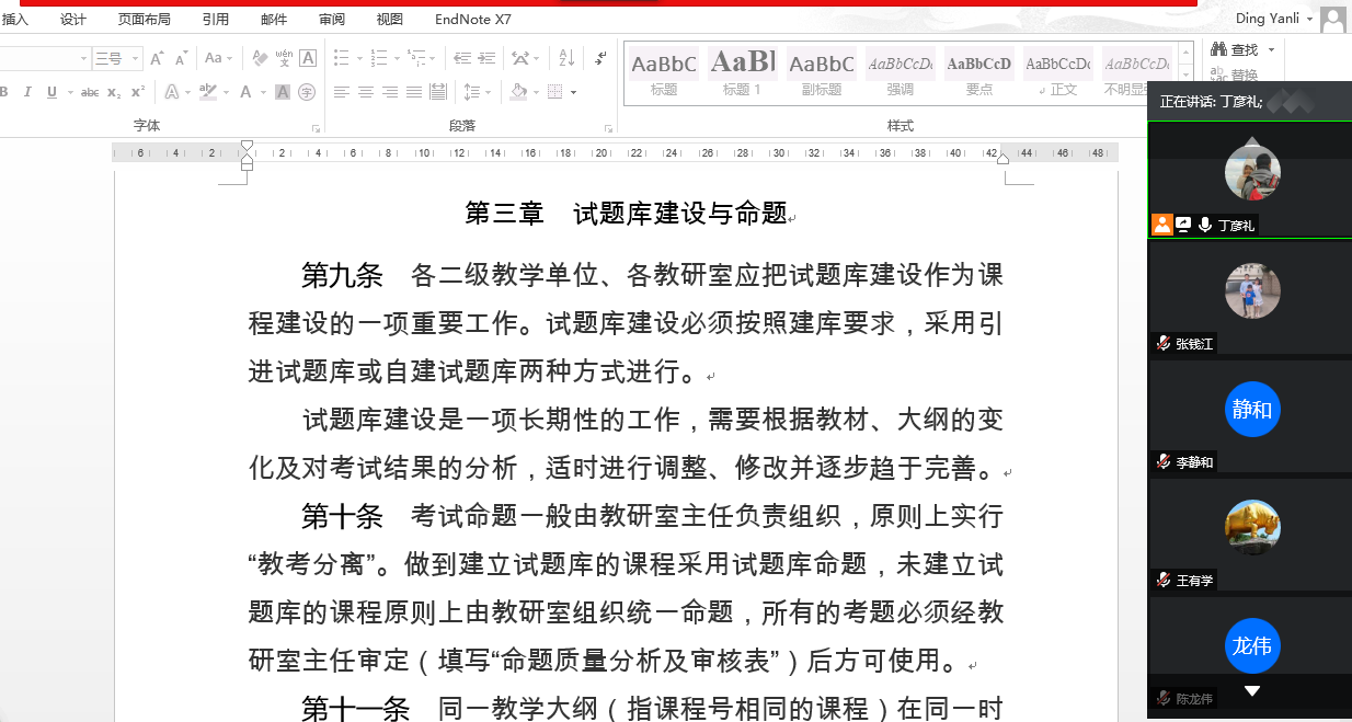 2020年6月23号下午,勘查技术与工程教研室在前期教研室老师自学的基础上,在线上(腾讯会议)又组织了一次集体学习,大家一起认证学习了《伟德国际1946手机全日制本科考试管理规定》,特别是重点学习了试题库建设与命题、成绩评定与管理这两部分的内容。在学习的过程中,结合本专业开展的专业认证持续改进计划和任务进行了讨论,对考试内容和成绩评定如何覆盖培养目标和支撑毕业要求进行了讨论,确定了下一步改革的计划和下学期对考试内容及成绩评定的要求。