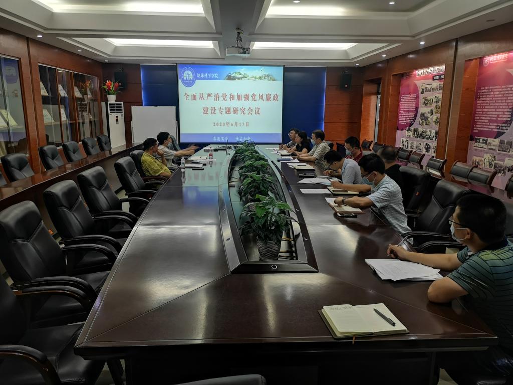 2020年6月17日上午,01215会议室,学院党委召开全面从严治党和加强党风廉政建设专题研究会议,学院党政领导班子全部参加会议,会议由曹文献书记主持。