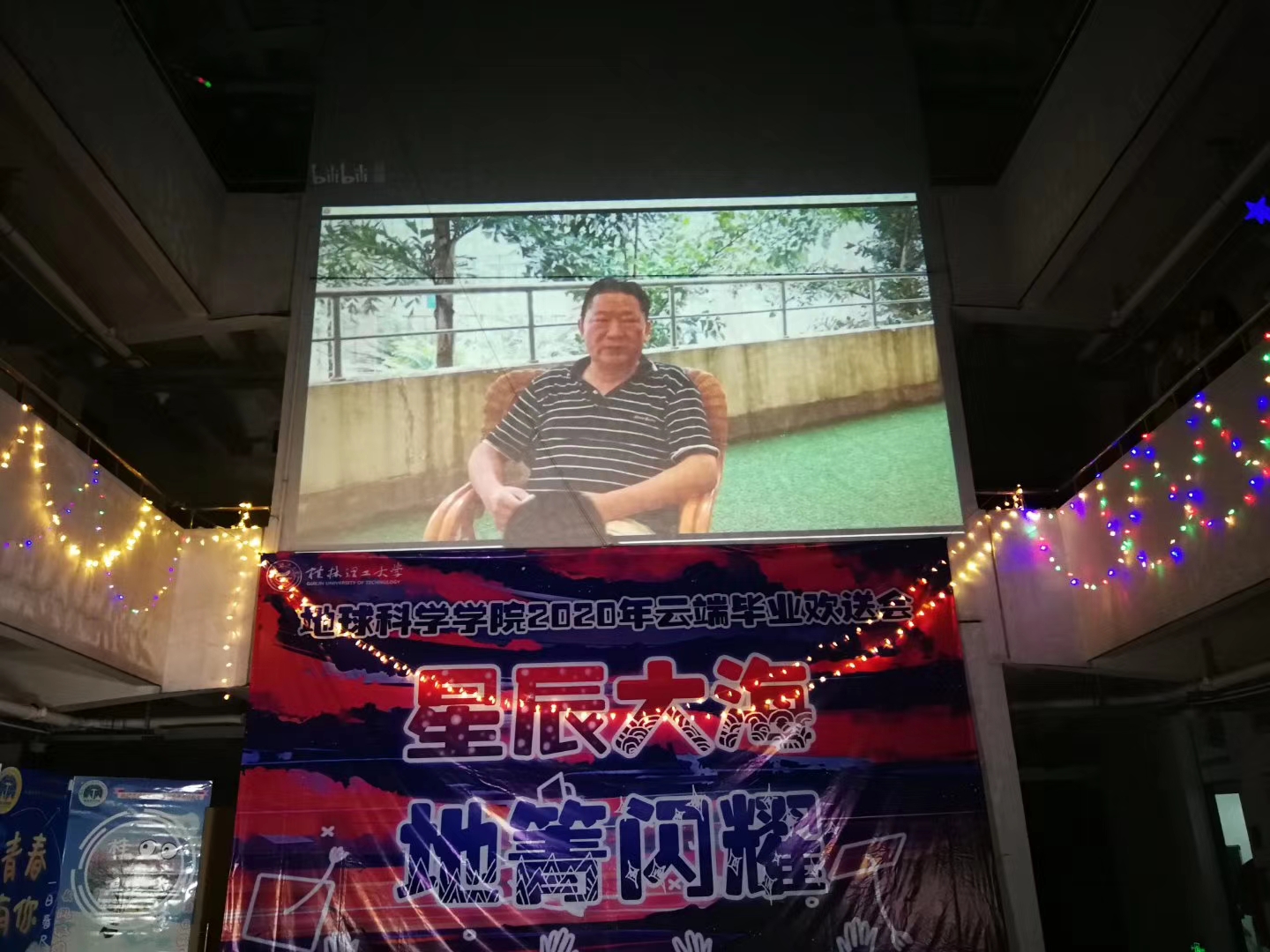 2020年6月16日晚7:30,我院2020年云端毕业欢送会顺利举行,此次晚会主题为“星辰大海,地菁闪耀”,晚会主会场为雁山校区24栋宿舍楼,分会场为各毕业生宿舍,活动形式为线上直播,学院党委副书记陶剑飞,学工办谷正杰、陈文甫、吴田波、宁乃向、周密、钱顺、林丽专老师出席本次晚会。