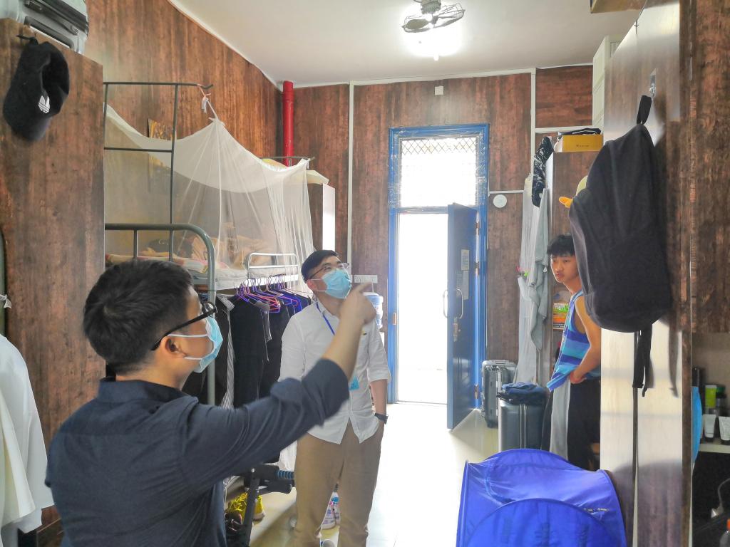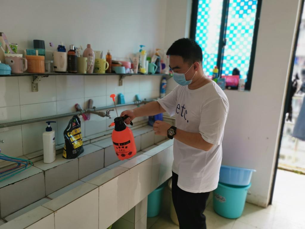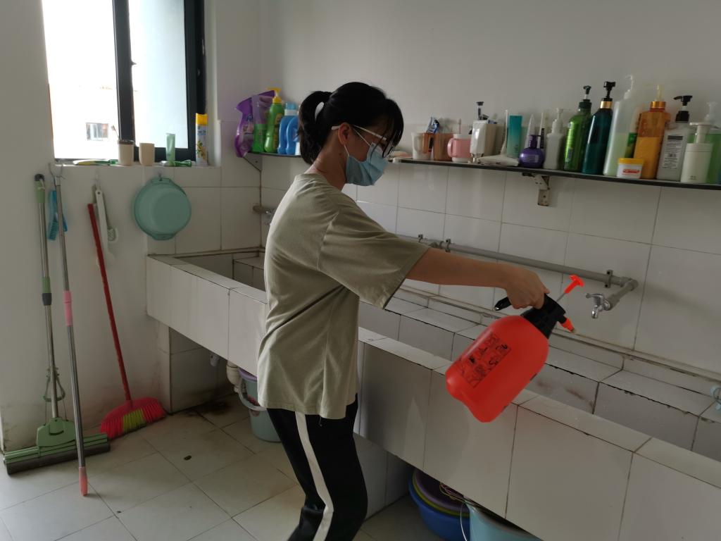 陶老师深入学生宿舍查看情况,对进一步做好学院学生宿舍清洁消杀和环境治理等工作提出明确要求,要求各年级辅导员必须切实负责,坚持把广大师生的生命安全和身体健康放在第一位,落实好疫情防控的相关工作要求。在学院学生志愿者的协助下,各年级辅导员老师深入到每栋宿舍楼,对每一个房间进行安全检查和全区域无死角的清洁消毒,并提醒同学们及时打开窗户通风换气,共同维护良好的宿舍环境。