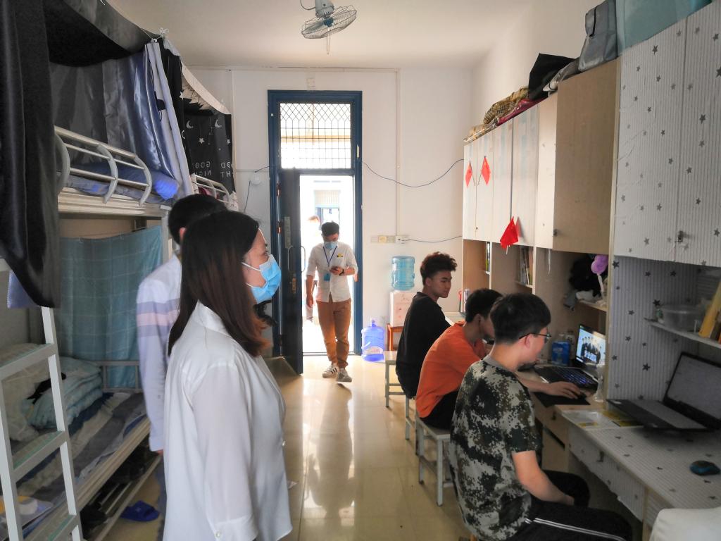 为了进一步落实区教育厅、学校及学院关于疫情防控工作要求,落实《bv伟德国际1946学生新冠疫情防控工作方案》等文件精神,保障学生返校复课后的健康安全,学院疫情防控工作领导小组副组长陶剑飞、各年级辅导员以及学生志愿者于2020年5月5日,到宿舍区开展宿舍安全检查和消杀工作。