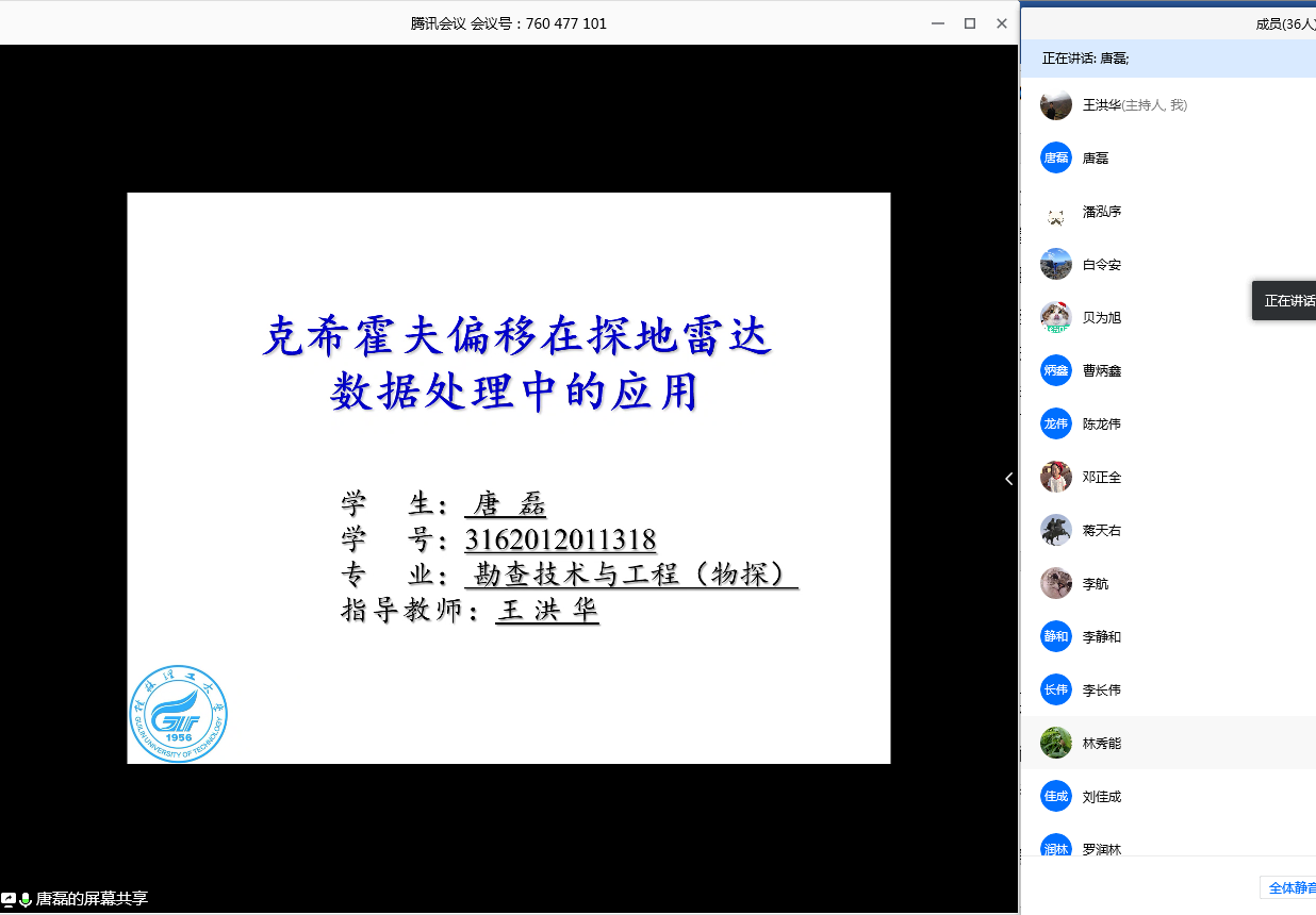 2020年4月9日上午9点半,勘查技术与工程教研室利用腾讯会议App组织2020届本科毕业生进行线上开题答辩。参加开题答辩的人员有当天上午无课的专业教师和全体2020届本科毕业生。学院主管教学的白令安副院长作为督导全程参加本次开题答辩。