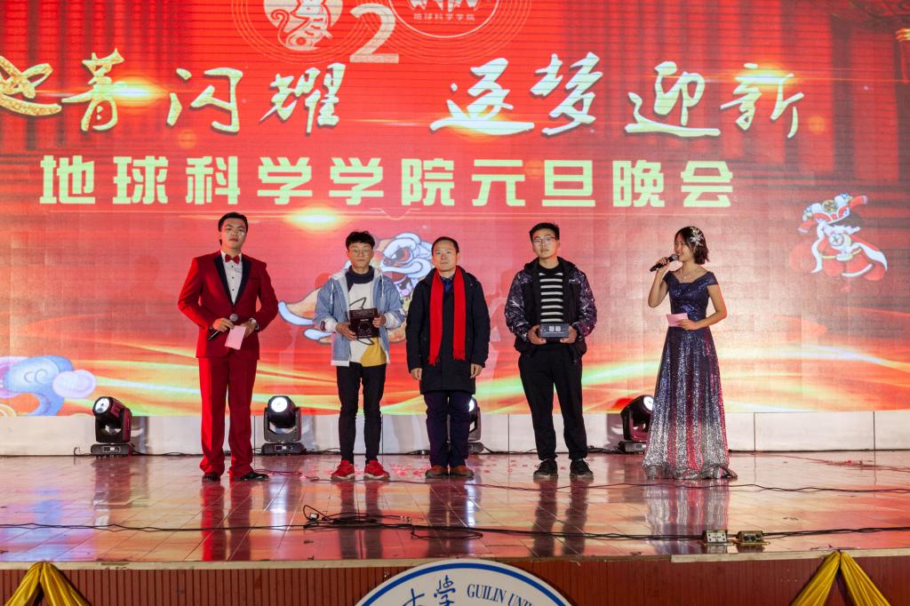 2019年12月27号晚,我院于雁山体育馆举办了2020年“地菁闪耀,逐梦迎新”元旦晚会,党委书记曹文献、院长熊彬、党委副书记陶剑飞、辅导员老师陈文甫、吴田波等参与此次活动。