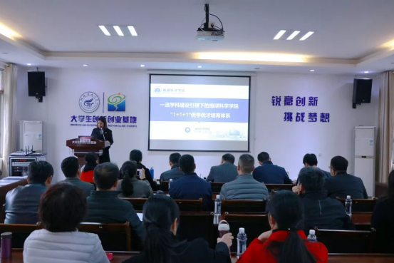 会上,陶老师围绕学院一流学科建设引领下的地学院“1+1+1”(目标+方案+工作室)优学优才培育体系的项目育人特色与创新点,分别就项目的建设思路、预期目标及实施方案等向评审专家进行了详细阐述和汇报。陶老师表示,我院要秉持深入打造“特色鲜明、示范性强、可借鉴推广”的学生工作品牌建设要求,并以此项目为契机,进一步加强凝炼、提升内涵、强化特色、打造品牌,着力打造能展示专业特点、具有示范性和可持续性的学生工作品牌项目。